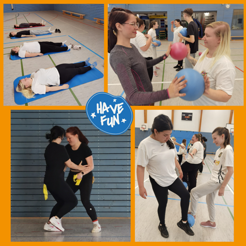Dabei wurden die Auszubildenden ermutigt, eigene Ideen und Vorstellungen einzubringen, was dem Projekttag eine persönliche Note verlieh und die Lernenden aktiv einbezog. So entstand eine lebendige Atmosphäre voller Austausch und Engagement. Die Vielfalt von Bewegungsspielen, Zumba und Pilates half, den Tag abwechslungsreich zu gestalten, sodass alle Teilnehmenden nicht nur ihre körperliche Fitness unter Beweis stellen, sondern auch wertvolle Teamfähigkeiten für ihre zukünftige Arbeit als Erzieherinnen und Erzieher entwickeln konnten.